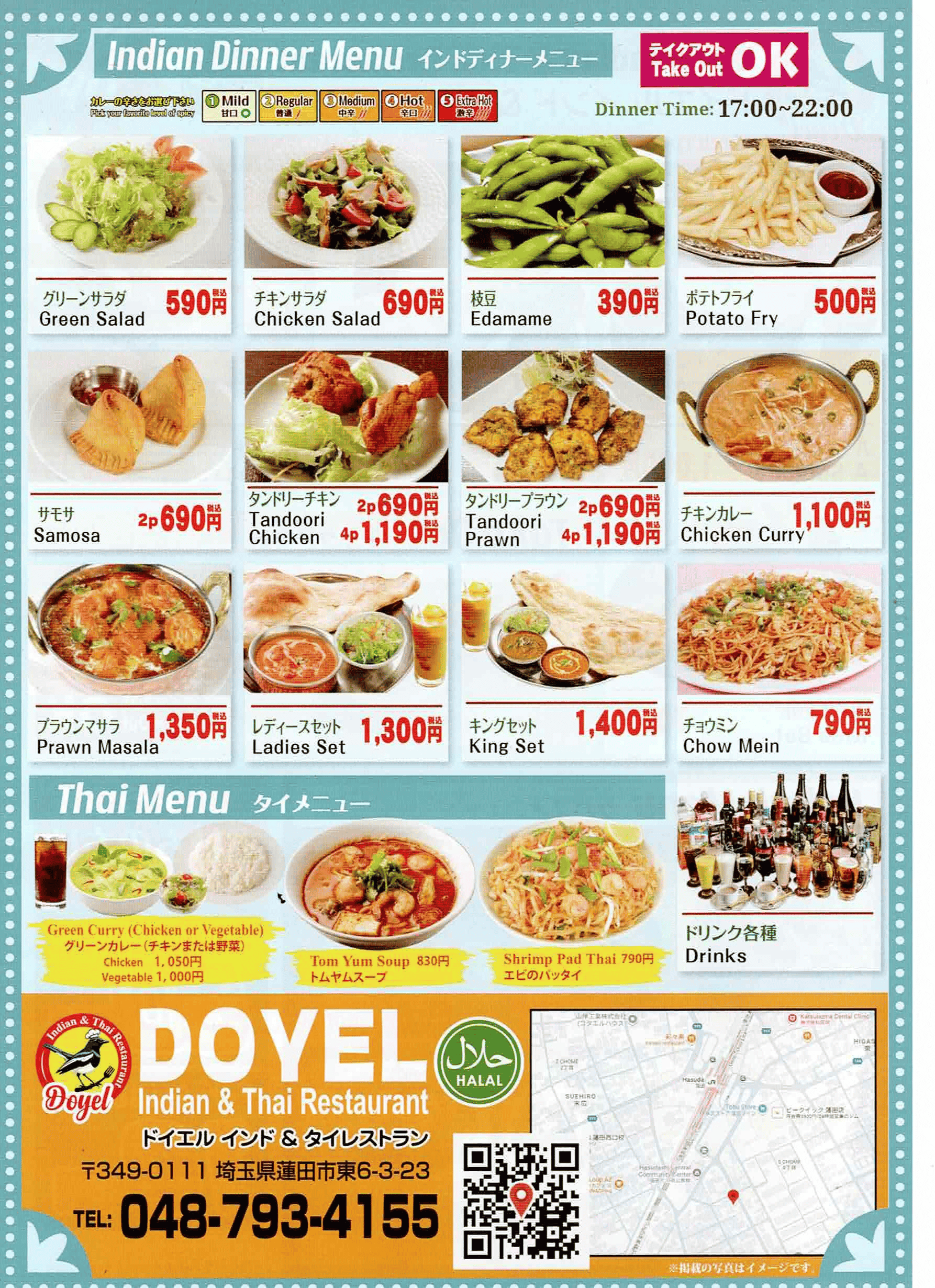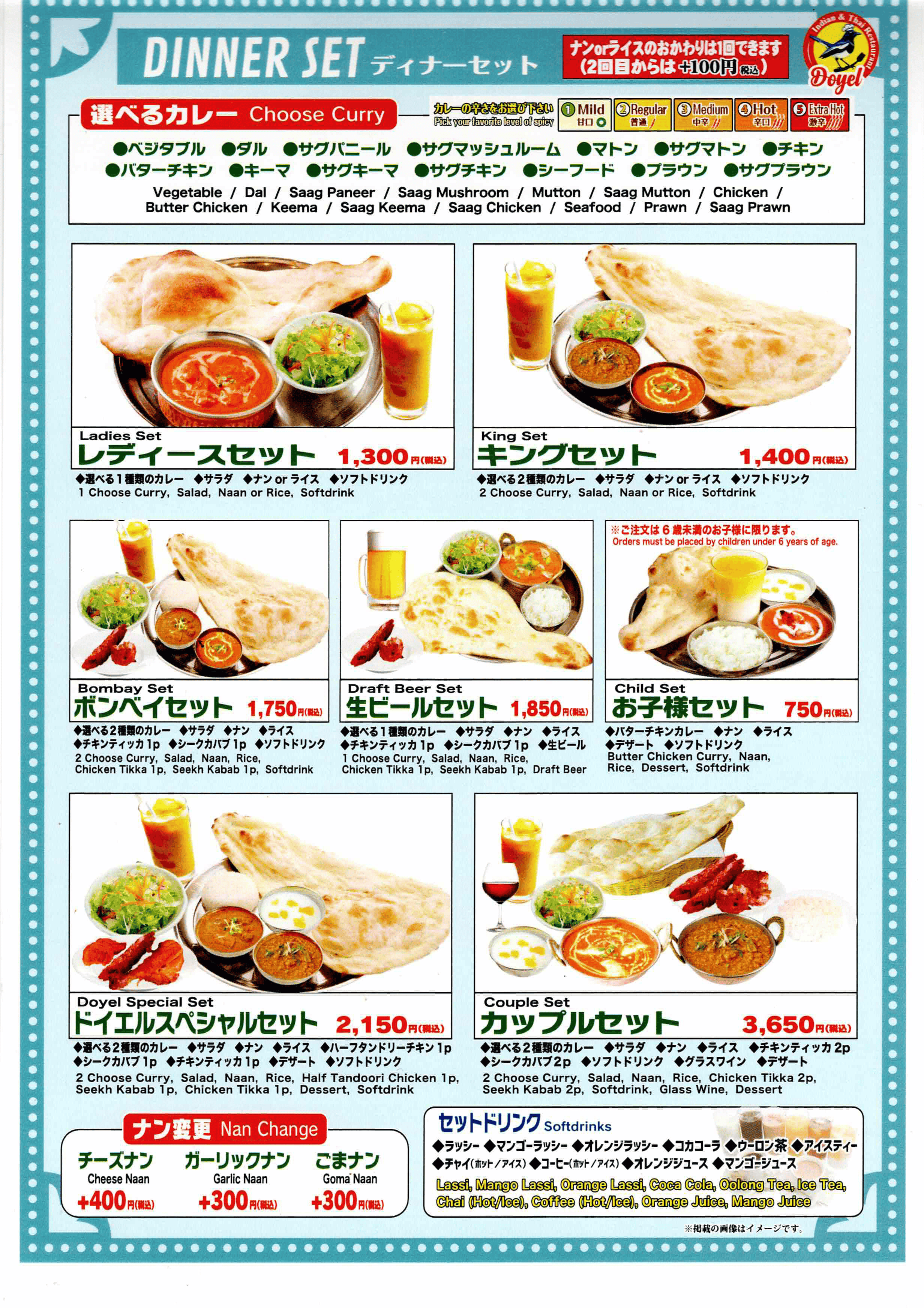 View Menu PDFWelcome to DOYEL ドイエル インド&タイ レストラン, serving authentic Indian and Thai cuisine in Japan for over 10 years.