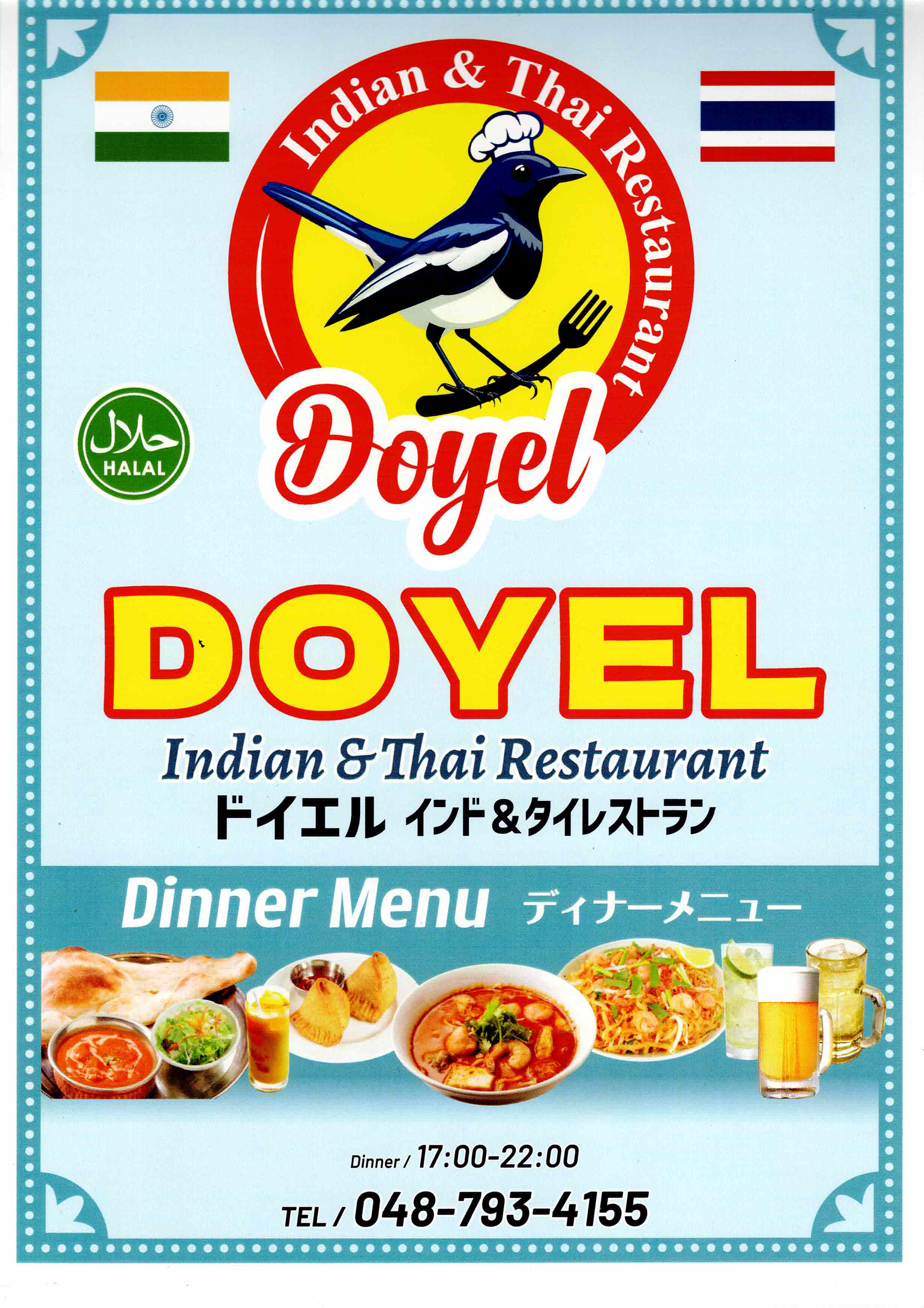 View Menu PDFWelcome to DOYEL ドイエル インド&タイ レストラン, serving authentic Indian and Thai cuisine in Japan for over 10 years.